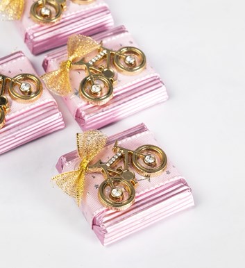 Bisiklet dekorlu bebek çikolatamız,sütlü çikolatadan fıstıklı olarak üretilmiştir.Net:15g