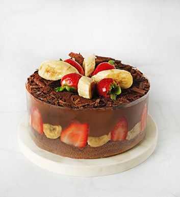 Zahirenin Çikolatalı Pastacı Kreması, Kakaolu Pandispanya, Çilek ve Muz(Pasta Ölçüleri:4-6 kişilik R:15 cm/ 6-8 kişilik R: 18cm/ 8-10 kişilik R:21cm)