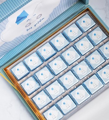 Yazılı Bebek Çikolata Kutusu (Mavi) | Zahire Pastanesi