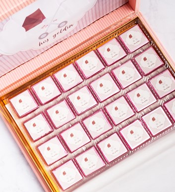 Madlen çikolatamızın mevcut tasarımını değiştirerek yeni doğacak bebeğinizin ismini yazdırabilir, dilerseniz sipariş verirken istediğiniz görseli yükleyerek tasarıma renk katabilirsiniz. (72 Adet Madlen)